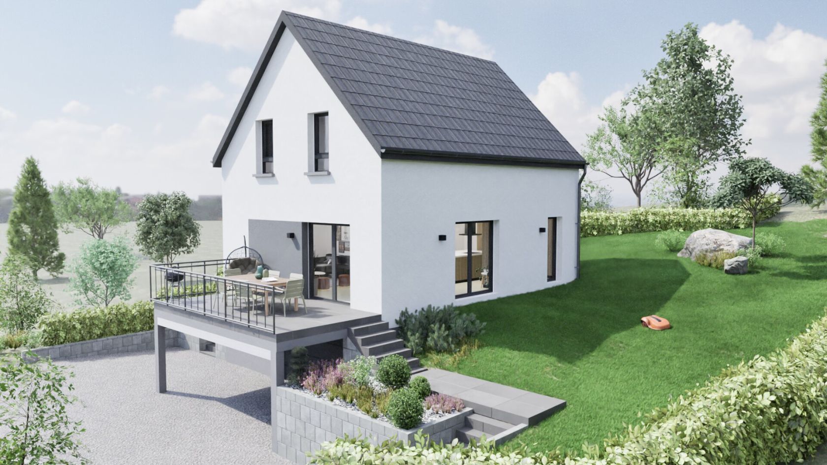 Nos projets incluent les garanties du Contrat de Construction de Maison Individuelle (CCMI). A la clé : l’assurance d’avoir une maison de qualité à la date et au budget prévus.